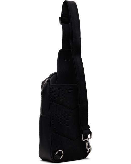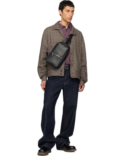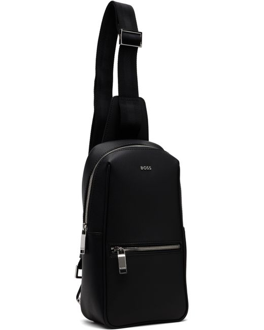 Grained leather backpack. · Adjustable padded shoulder strap · Logo hardware and zip pocket at face · Padded mesh panel at back face · Zip closure · Patch pocket at interior · Twill lining · H11.5 x W7 x D7.25 Supplier color: Black