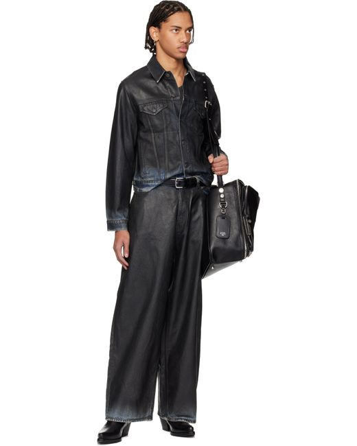 Coated non-stretch cotton- and lyocell-blend denim jacket. · Spread collar · Button closure · Flap pockets at chest · Welt pockets at waist · Buttoned barrel cuffs · Adjustable button tabs at back hem · Logo-engraved black hardware Supplier color: Black