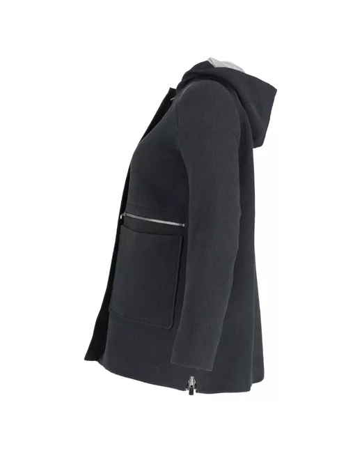 navy blue fixed hood conceaaled zip closure multiple pockets long sleeves straight hem Condition: EXCELLENT. This previously owned item is in near-perfect condition with no signs of damage or use.
