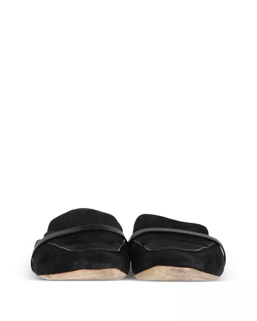 black suede open back strap detail Condition: GOOD. This previously owned and used item is in good condition with minimal signs of use. This may include fading of material or plating and scratches.