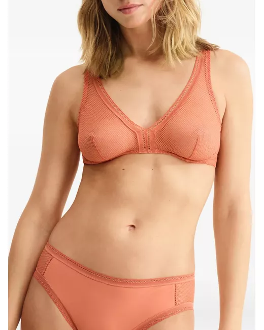 orange mesh adjustable straps hook fastening triangle cups no underwire