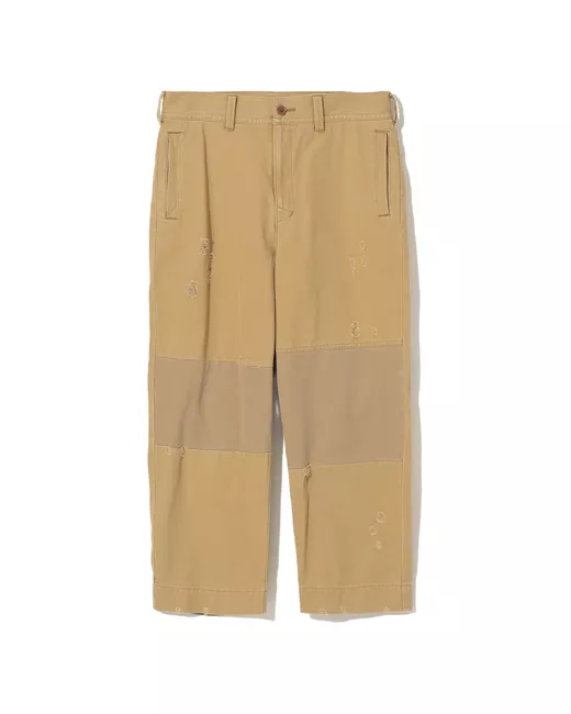 beige patchwork design distressed detailing buttoned back pockets belt loops button fly