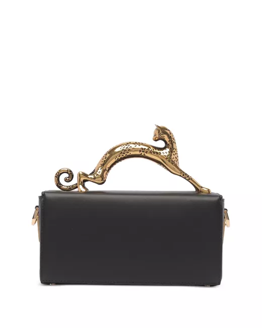 nero manico per gatto tracolla rimovibile e regolabile chiusura magnetica fessura interna dettagli color oro