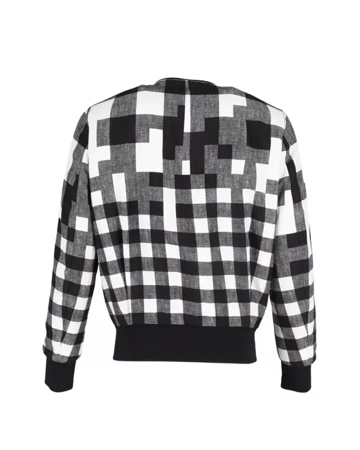 black checkered pattern zip fastening ribbed trims round neck Condition: EXCELLENT. This previously owned item is in near-perfect condition with no signs of damage or use.