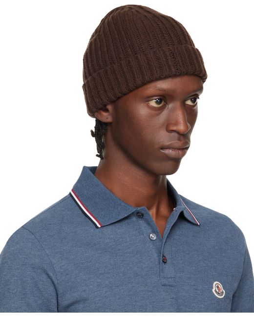 Rib-knit virgin wool beanie. Rolled brim. Supplier color: Chocolate