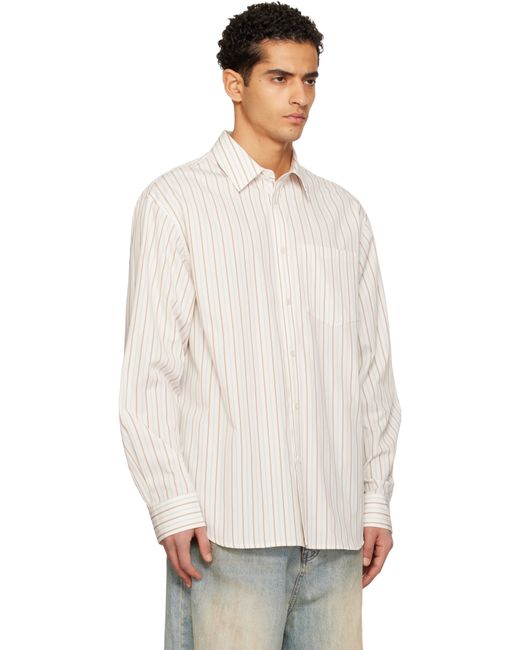 Cotton poplin shirt. · Stripes throughout · Spread collar · Button closure · Patch pocket at chest · Logo embroidered at front · Shirttail hem · Dropped shoulders · Pleats at buttoned barrel cuffs · Box pleat at back collar extends to yoke Supplier color: White