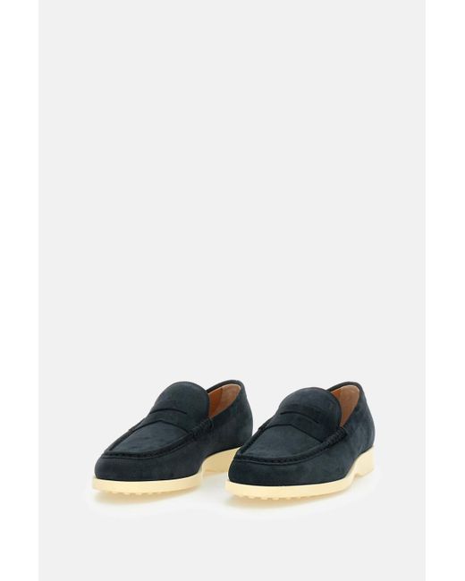 Tod's man loaferUpper in blue suede calfskin leatherEmbossed Tod's monogramWhite rubber soleMade in Italy