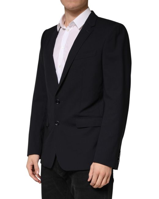 DOLCE & GABBANA Gorgeous brand new, 100% Authentic Dolce & Gabbana blazer. Designed with a sleek 2-button closure, it offers a tailored silhouette that enhances modern sophistication. Crafted from premium materials, this suit jacket is perfect for formal occasions or stylish business attire, delivering timeless Italian craftsmanship and contemporary flair. Style: 2 button suit blazer Color: Black Material: 98% Virgin Wool 2% Elastane Int.: 100% Viscose Fitting: Slim fit Three outside pockets One open vent in the back Logo details Made in Italy Great fitting and comfort