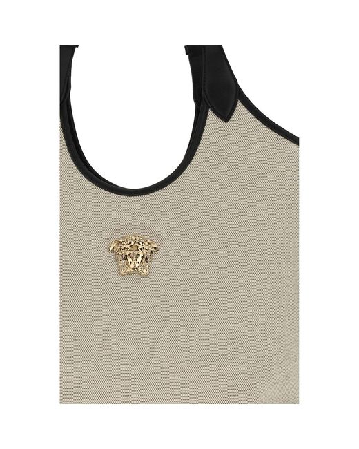 The La Medusa Tote Bag by Versace is a sophisticated and distinctive accessory, featuring embossed “Versace” lettering and the iconic La Medusa logo. The adjustable double handles offer comfort and practicality, while the interior features a zippered pocket for organizing essentials. An internal protective strap adds an extra touch of functionality, making this bag not only stylish but also perfect for everyday use. Season: SS26 Dimension: 50x45x14 Composition: 100% Cotton