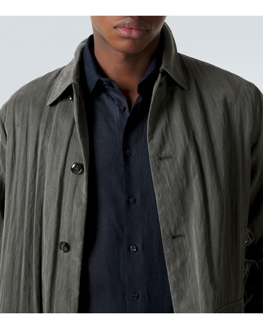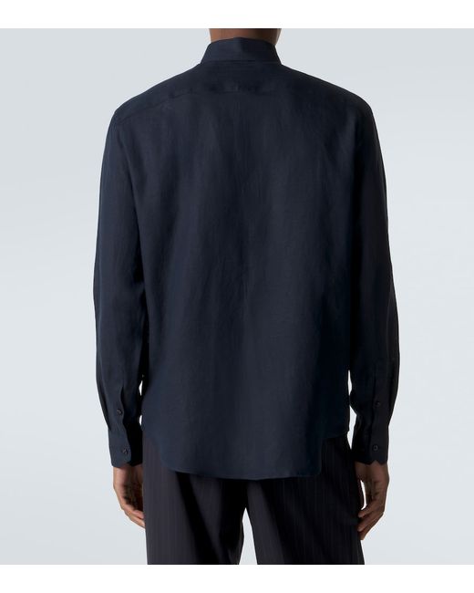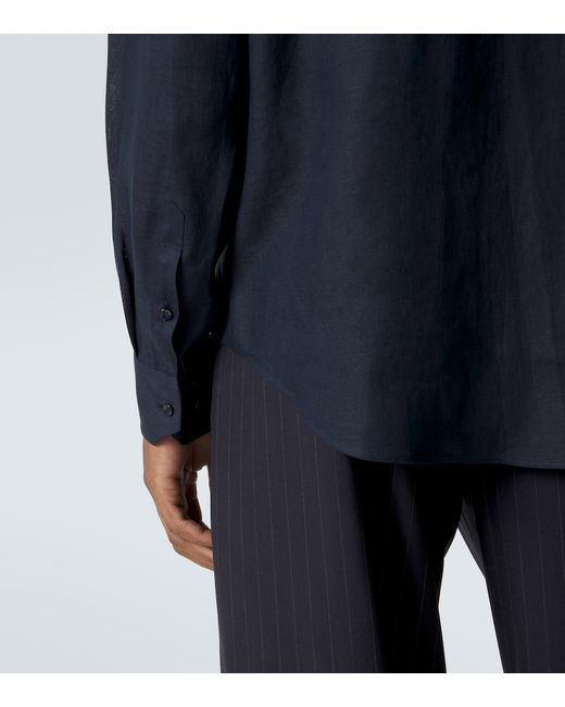 Materiale: 100% lino. Trattamento: lavaggio in lavatrice a 30°. Made in Italy. Colore del designer: Night Sky. Contiene parti non tessili di origine animale. Collo: classico (a punta). Chiusura: abbottonatura frontale. Polsini: abbottonato. Lino.