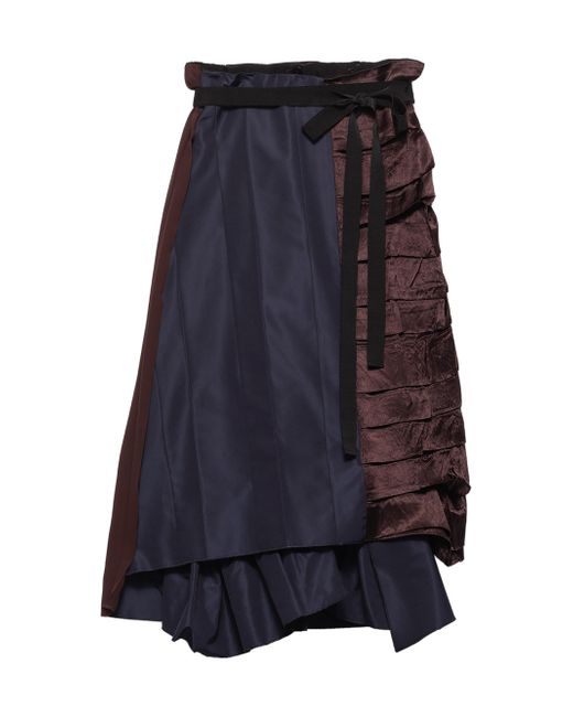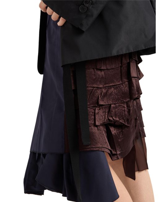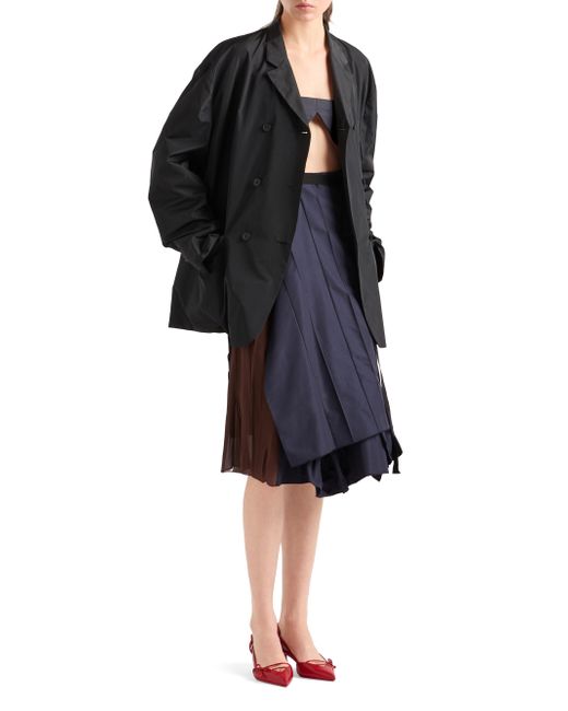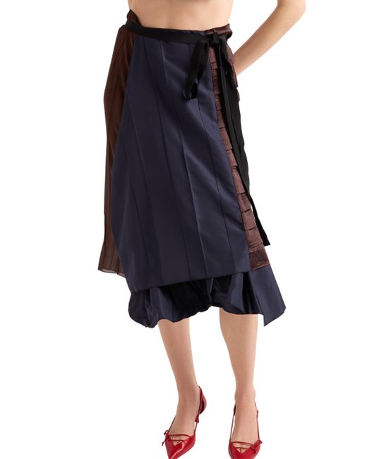Wraparound silhouette Garment with petticoat Center back closure with buttons and ribbon Asymmetrical insert detail The garment is formed by panels of different fabrics joined along vertical lines Grosgrain belt 100% silk, 100% acetate, 100% polyester Imported. Lsd Rtw - Prada Rtw > Prada > Saks Fifth Avenue. Prada. Color: Blue. Size: 0.