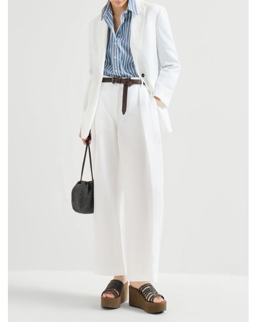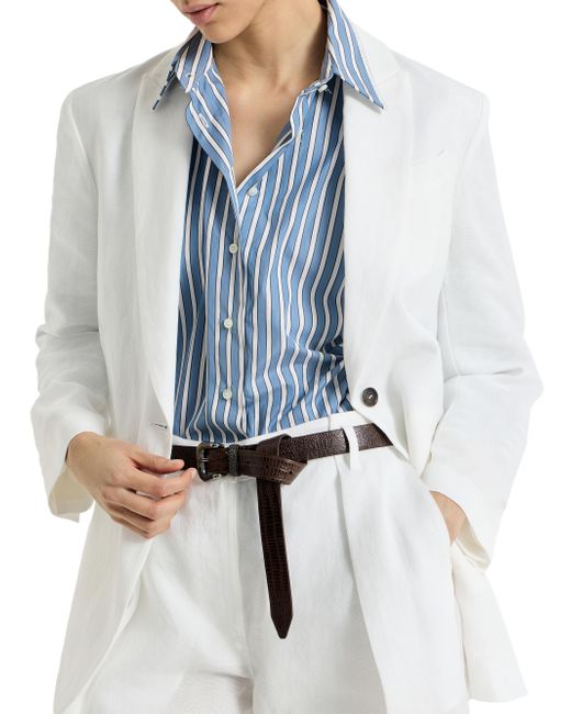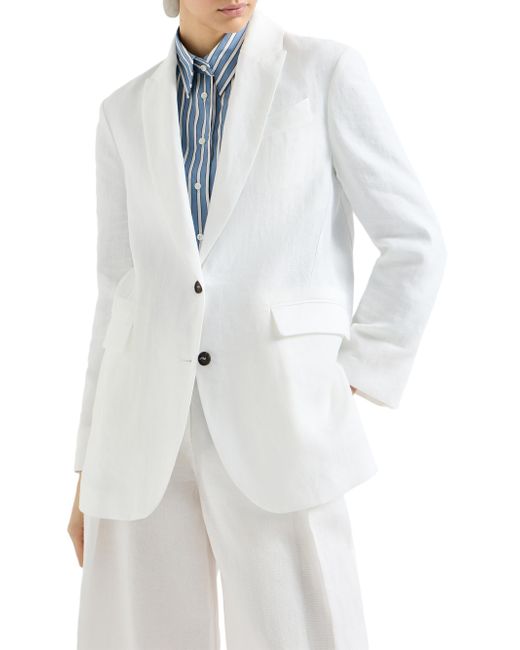 Cotton blazer with monili. Horn button closure Peak lapel Cuffs have four horn buttons Welt pockets with flap and chest pocket UnlinedDouble back vent Nickel-free monili decoration Request dry cleaning at specialist cleaner's only, do not bleach. Do not tumble dry, iron at low temperature 100% cotton Made in Italy. Lsd Rtw - Brunello Cucinelli Rtw > Brunello Cucinelli > Saks Fifth Avenue. Brunello Cucinelli. Color: White. Size: 6.
