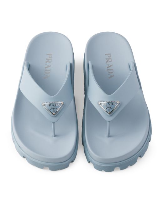 These rubber thong sandals have a contemporary silhouette with sleek details. The style, enriched by the iconic enameled metal triangle logo, is characterized by a rubber sole with lug tread that adds a sporty touch. Enameled metal triangle logo Rubber sole: 20 mm / 0.7'' Lug tread Imported. Lsd Rtw - Prada Rtw > Prada > Saks Fifth Avenue. Prada. Color: Blue. Size: 9.