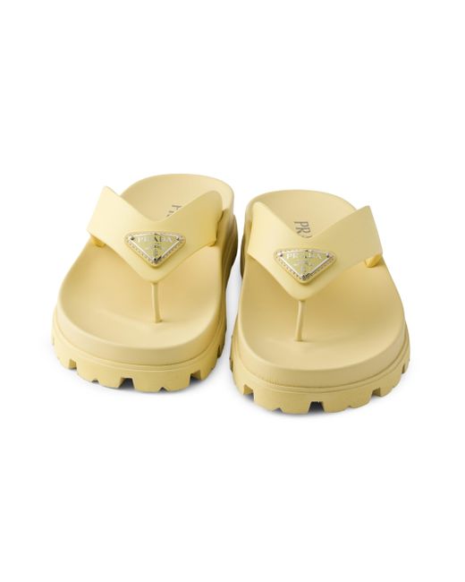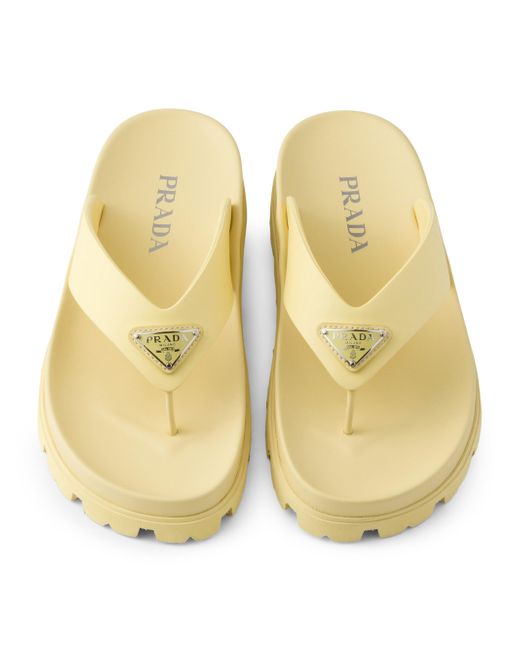 These rubber thong sandals have a contemporary silhouette with sleek details. The style, enriched by the iconic enameled metal triangle logo, is characterized by a rubber sole with lug tread that adds a sporty touch. Enameled metal triangle logo Rubber sole: 20 mm / 0.7'' Lug tread Imported. Lsd Rtw - Prada Rtw > Prada > Saks Fifth Avenue. Prada. Color: Yellow. Size: 5.