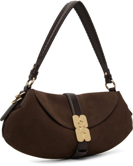 Recycled PELINOVA® leather-blend suede shoulder bag. · Buffed recycled leather-blend trim throughout · Adjustable and detachable shoulder strap · Logo hardware at face · D-rings at sides · Logo embossed at back face · Magnetic press-stud flap · Patch pocket at interior · Microsuede lining · Gold-tone hardware · H6.5 x W14.5 x D2.5 Supplier color: Chicory coffee