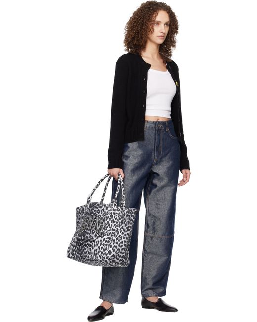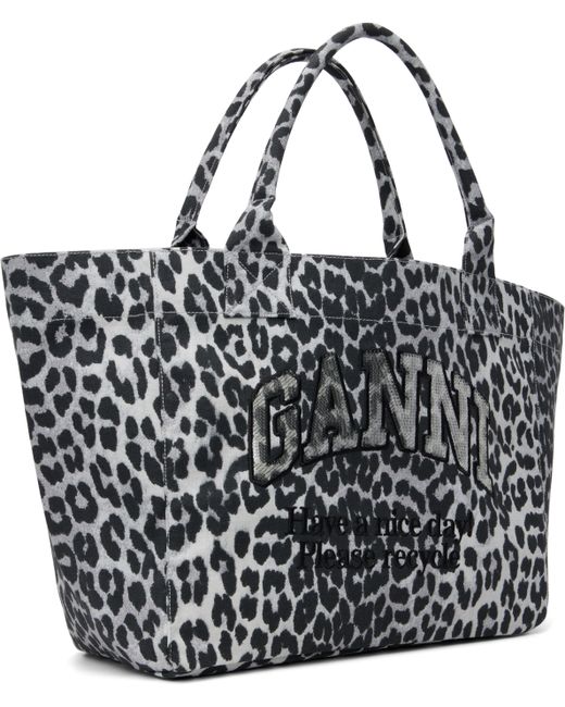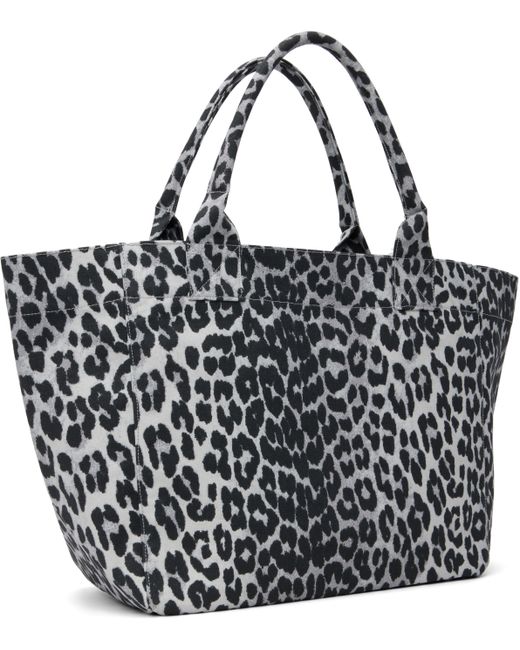 Cotton canvas tote. · Leopard pattern printed throughout · Rolled twin carry handles · Sequinned logo and embroidered text at face · Open throat · Zip pocket and patch pockets at interior · Twill lining · H12.5 x W15 x D6.5 Supplier color: Silver