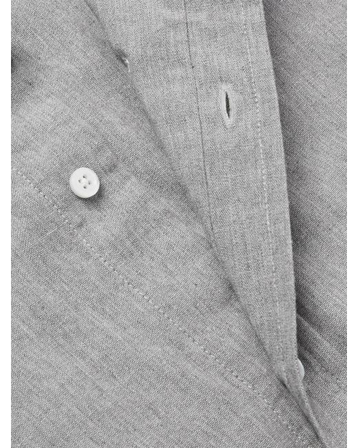 The four-bar striping on the sleeve marks this shirt out as Thom Browne's, it's one of the label's most popular signatures, used on everything from knitwear to tailoring. It's been made in Italy from mid-weight cotton-chambray and fastens with white mother-of-pearl buttons.