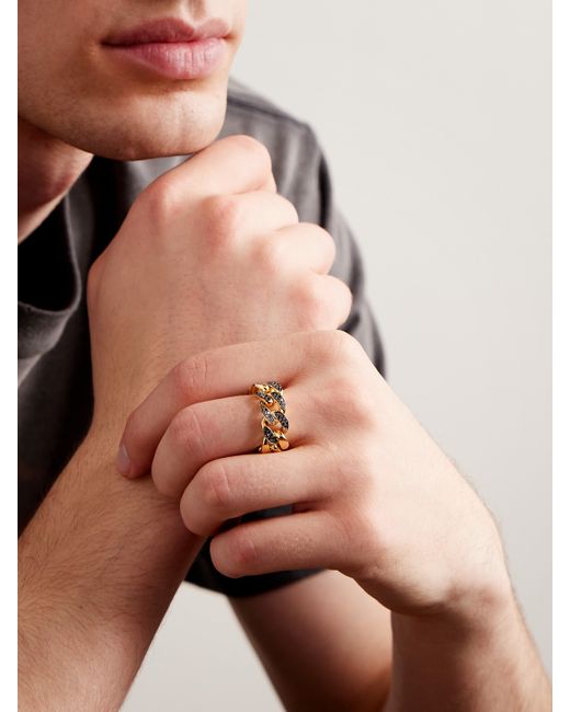 SHAY is inspired by the laid-back, rock 'n' roll spirit of its native Los Angeles. This ring is made from industrial 18-karat gold curb links that lie comfortably flat. Blackened diamonds add a dark glisten.