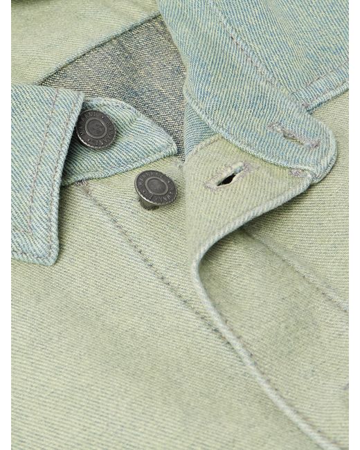 Manaaki's overshirt is made from patches of denim in tonal-blue and green. It's cut for a relaxed fit and has slightly dropped shoulders and silver-tone buttons through the front.