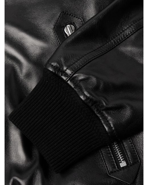 For his first runway show as Creative Director of TOM FORD, Haider Ackermann began with a run of black-on-black outfits, inspired by the style of its namesake founder. Part of the inaugural AW25 collection, this bomber jacket has been made in Italy from super-soft plonge leather and cut in a slouchy shape, with ribbed trims to temper the fit.