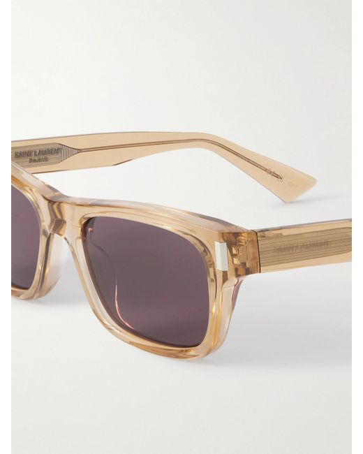 SAINT LAURENT Eyewear's square-frame sunglasses are fitted with purple-tinted lenses that make them a touch cooler than classic styles. They're made from yellow acetate with exposed wirecore along the arms that's etched with the brand's logo.