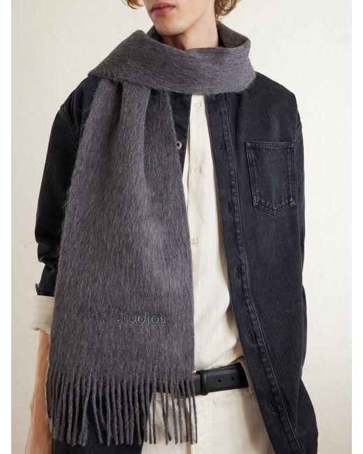 "Mixing your materials adds visual interest to your look"; says The Journal . Acne Studios' 'Vinnie' scarf is knitted from a textured blend of alpaca and wool and fringed at the edges.