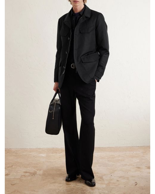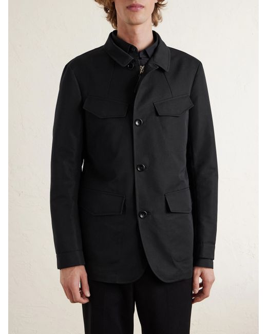TOM FORD's jacket is a sleek rendition of military styles. It's made from smooth cotton-blend with angled flap pockets and is trimmed with supple leather at the collar.