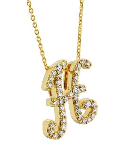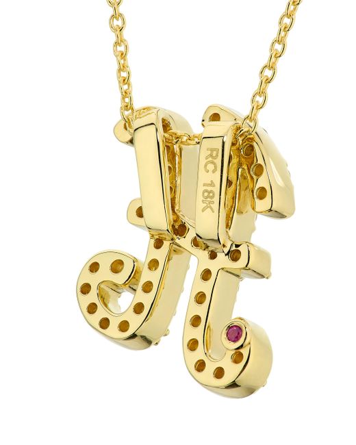 From the Tiny Treasures Collection. Diamonds cover the script initial pendant centering this delicate 18K yellow gold chain necklace. Roberto Coin signs each piece with a single ruby placed in a hidden position. Diamonds, 0.24-0.34 tcw Diamond color: G-H Diamond clarity: SI Ruby 18K yellow gold Lobster clasp Made in Italy SIZE Adjustable chain: about 16"-18"L Please note: Diamond carat weight varies by letter. ABOUT THE BRAND Jewelry designer Roberto Coin founded his eponymous line in 1996, with a strong emphasis on elegance and creative experimentation. Each piece is the result of a long creative process, taking inspiration from cultural influences and nature. Fine Jewelry - Roberto Coin Asset > Roberto Coin > Saks Fifth Avenue. Roberto Coin. Color: Initial H.