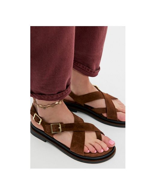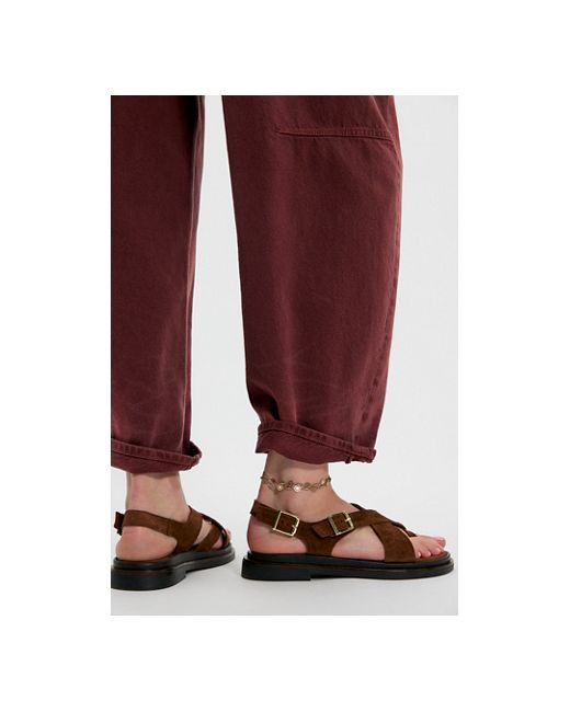 An elevated essential, these wrap sandals feature strappy buckled uppers on a cushioned footbed and sleek soles for a chic look. **Features:** Strappy suede uppers, adjustable buckled straps, round toe, cushioned footbed, minimal block heel **Why We ❤ It:** Pair with your favorite anklets for a special touch for summer and beyond. Safari Sandals by Free People in Chocolate, Size: US 6