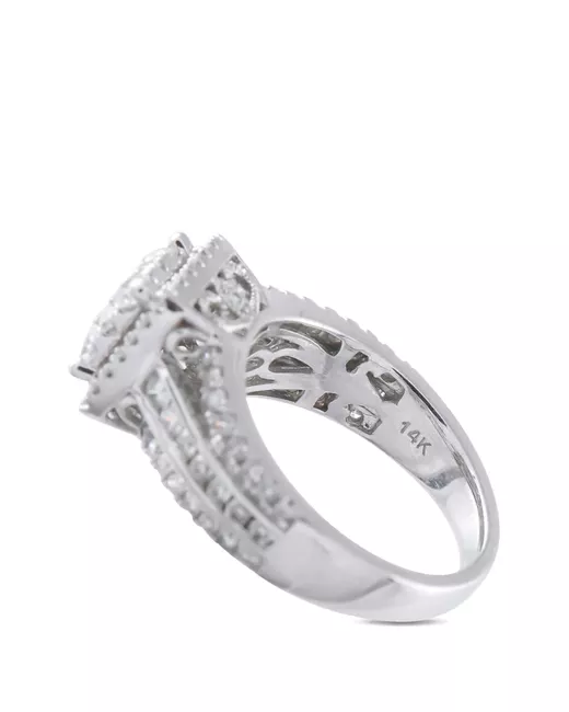 14K white gold halo-set and prong-set round-cut diamonds totalling 1.30 carats milgrain detailing square top Your purchase will arrive with a gift box. Normal everyday use and external agents may reduce the lustre of gemstones and gold surfaces. To maintain, use specific, non-abrasive products specially meant for cleaning jewellery. Condition: EXCELLENT. This previously owned item is in near-perfect condition with no signs of damage or use.