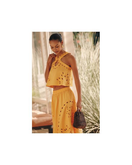 By Celandine 100% Cotton Pullover styling Machine wash Imported Cutwork Sun Top by Celandine in Orange, Women's Size: XS, Cotton at Anthropologie