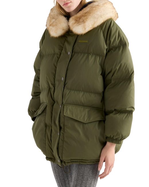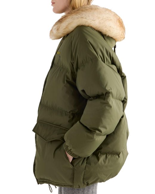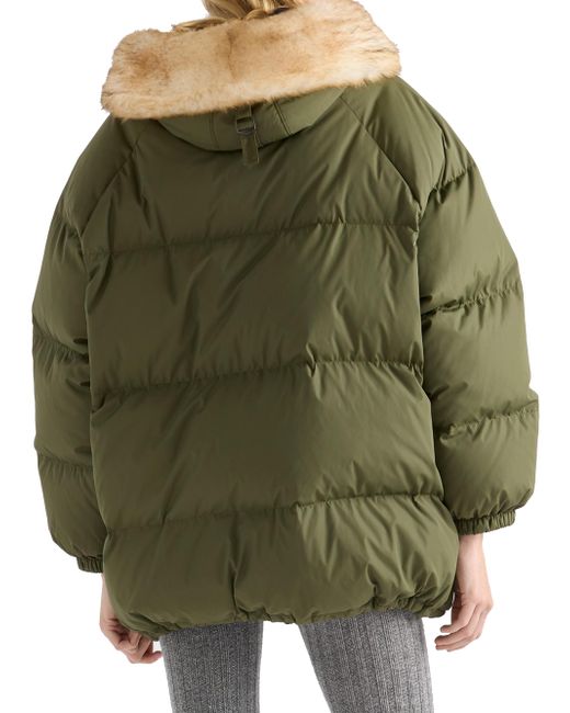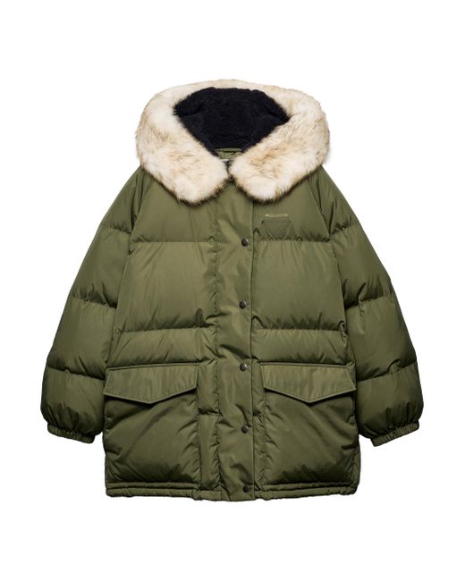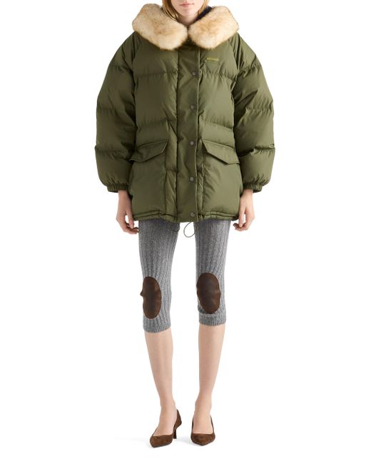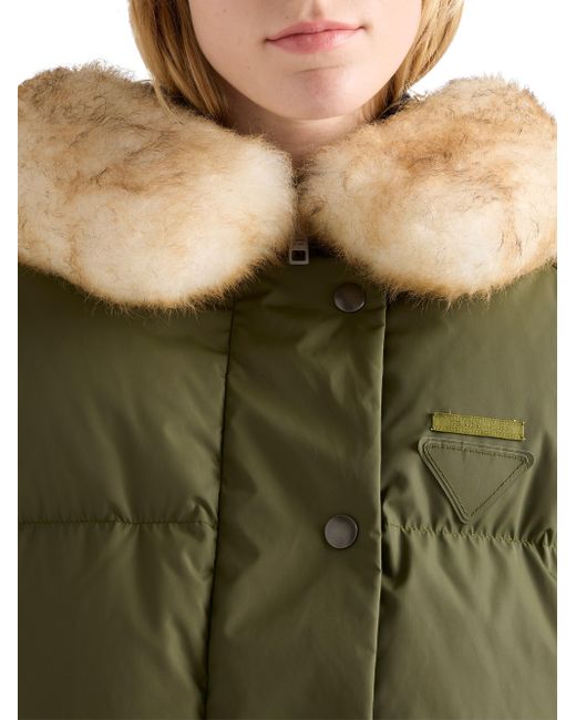 Eco-feather padding Hooded collar Long sleeves Elasticized cuff Zipper and snap closure Patch pockets Elasticized drawstring hem Fabric triangle logo and sartorial logo label Fleece-lined hood with shearling trim Fur origin: Spain Fur treatment: Dyed Fur type: Sheep Imported 100% Polyamide - 100% Sheep. Lsd Rtw - Prada Rtw > Prada > Saks Fifth Avenue. Prada. Color: Green. Size: 0.