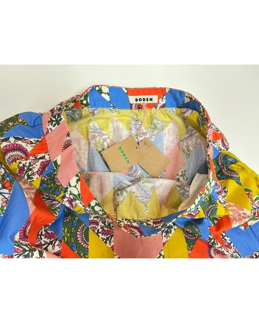 The Boden Lorna Maxi Skirt in size 16 features a vibrant floral patchwork pattern, making it perfect for various occasions such as travel, parties, casual outings, and formal events. Made of 100% cotton, this long skirt with a mid-rise and zip closure is ideal for the summer and spring seasons. The multicoloured design adds a bohemian touch to your wardrobe, while the woven fabric ensures durability. Branding of Boden adds a touch of quality and style to this new with tags garment, perfect for adding a pop of colour to your outfit.
