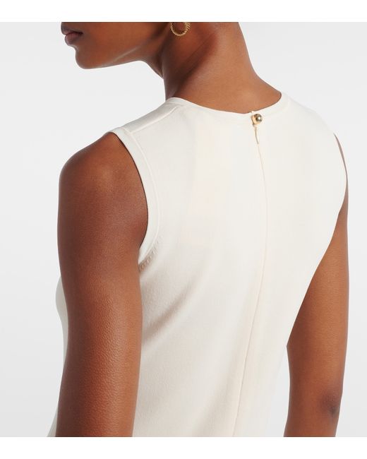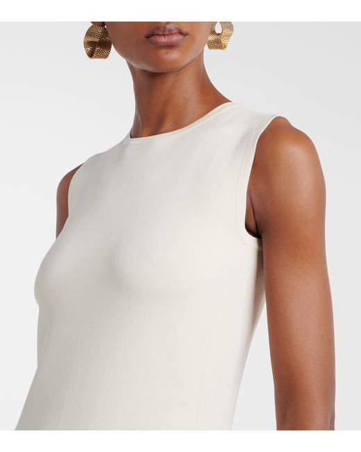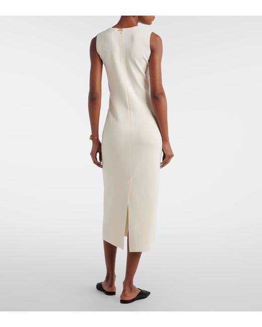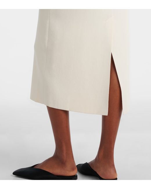 Materiale: 65% viscosa, 35% poliammide. Trattamento: lavaggio a mano. Made in China. Colore del designer: Avorio. Chiusura: zip posteriore nascosta. Spacco.