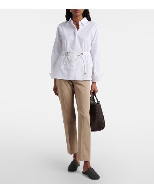 Materiale: 100% cotone. Trattamento: lavaggio a mano. Made in Italy. Colore del designer: Bianco Ottico. Chiusura: abbottonatura nascosta. Coulisse in vita. Cotone.