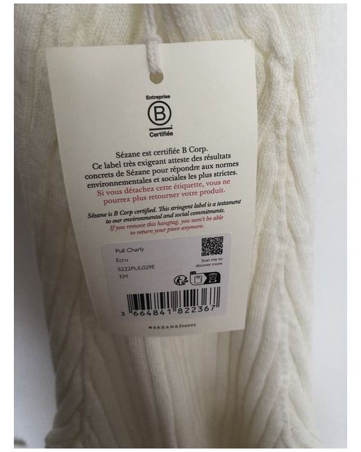 Sezane CHARLY JUMPER Size M White Brand new with tag Please feel free to have a look at my other items. Long-sleeve jumper in merino wool and organic cotton Made in France Rib knit Slightly raised neckline Length from the shoulder: roughly 60 cm / 23.6 in