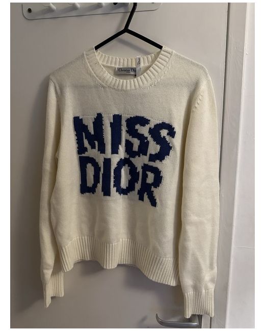The Miss Dior Jumper is a stylish and versatile choice for casual occasions. Made from wool, this tight-knit jumper features a round neck and long sleeves, offering both comfort and warmth. The cream colour adds a touch of elegance, while the Dior branding adds a touch of luxury. Perfect for a regular fit in size M, this pullover style jumper is a timeless addition to any woman's wardrobe. Remember to dry clean only to keep it looking its best.