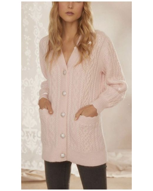 Cable Jewelled Button Longline Cardigan 350 da Women di colore Rosa