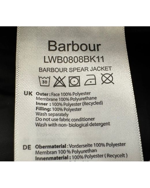 The Barbour Spear Jacket features a longer length design with an added baffle quilted lining for premium comfort and warmth. Longline Waterproof Coat. Peached waterproof finish. Machine washable. Outer: face: 100%.