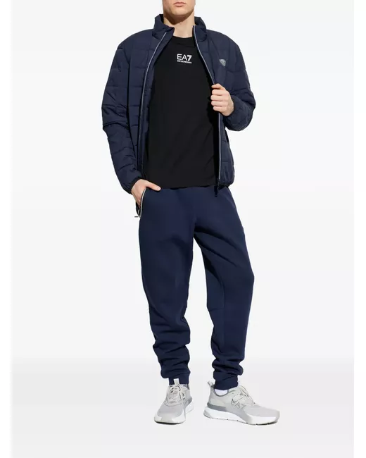 navy blue quilted finish logo patch zip fastening high neck long sleeves