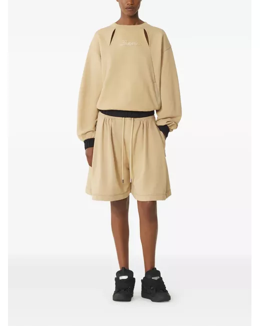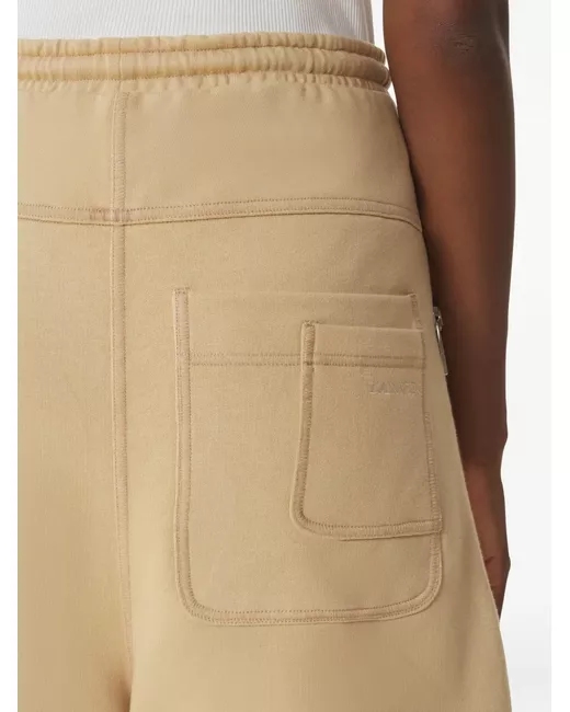 beige cotton drawstring waist silver-tone hardware zip pockets back patch pocket
