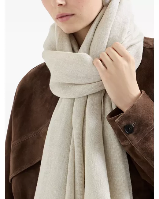 filo lamé lato corto con frange La sciarpa misura circa 100cm in larghezza e 120cm in lunghezza 73% lino, 21% viscosa, 6% poliestere