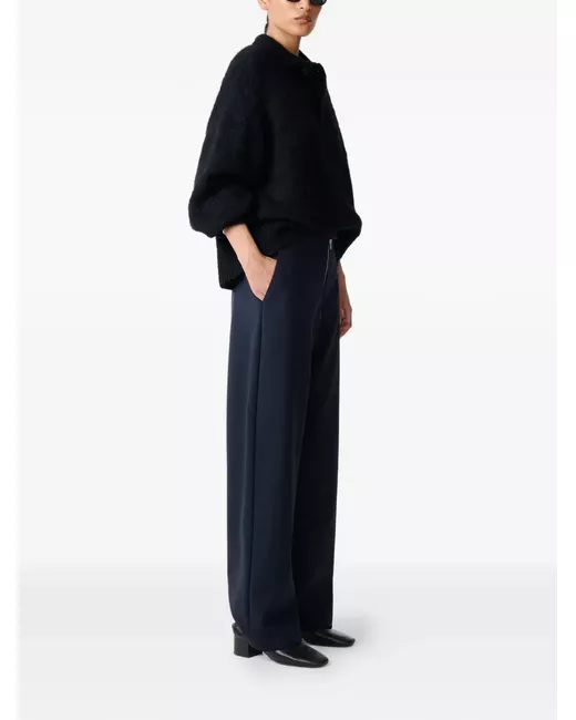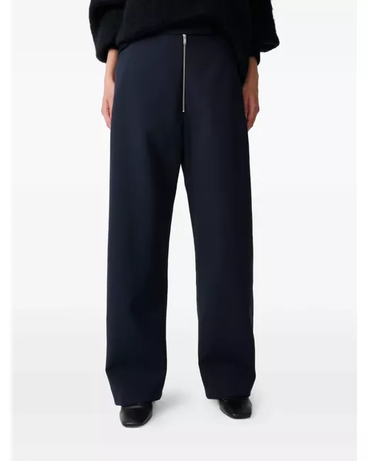 navy blue wool blend wide leg zip fly fastening