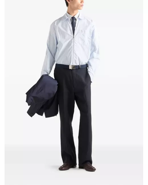 The elegant, timeless silhouette of this stretch cotton shirt has been reinterpreted with a contemporary cut and a slim fit. The style has a classic collar and is embellished with mother-of-pearl buttons. rounded hem classic cuff