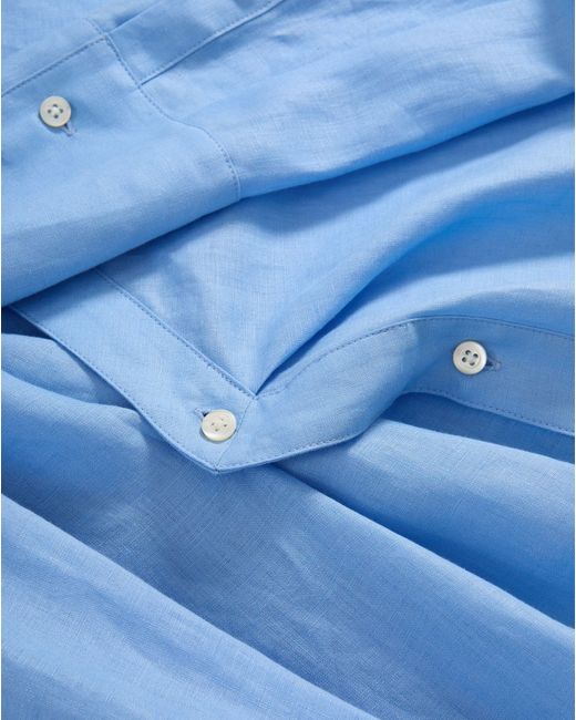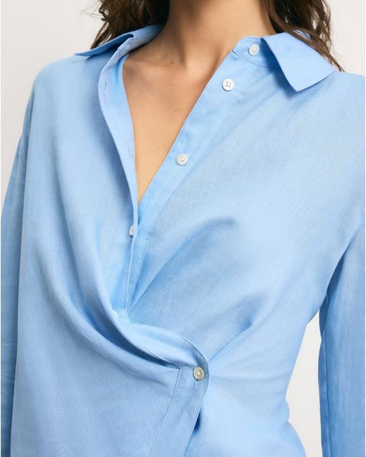 A classic made modern. Crafted from 100% linen in sky blue, the Perezzi reimagines the button-down shirt with a unique twist: a pointed collar that falls to an asymmetrical placket, fastening with a single button for a wrap-like effect. Incredibly versatile, pair it with everything in your closet-jeans, trousers, skirts.you name it.100% LinenLining: 100% CottonDry clean onlyStyle #2603LN4241844