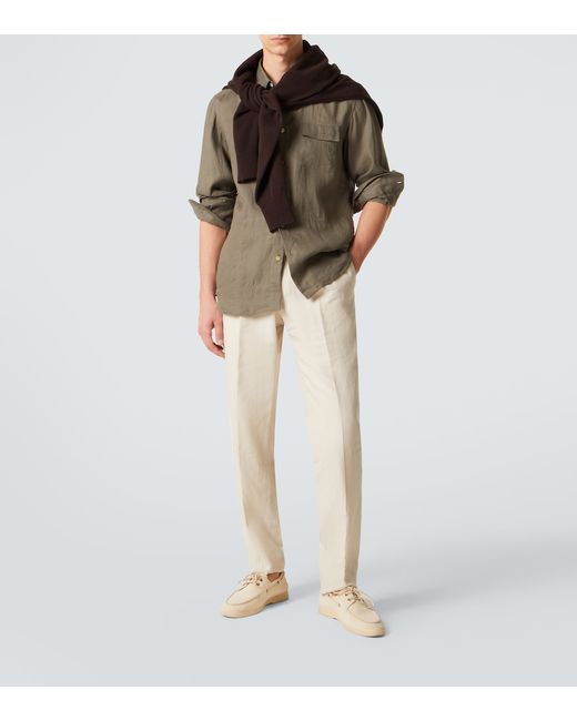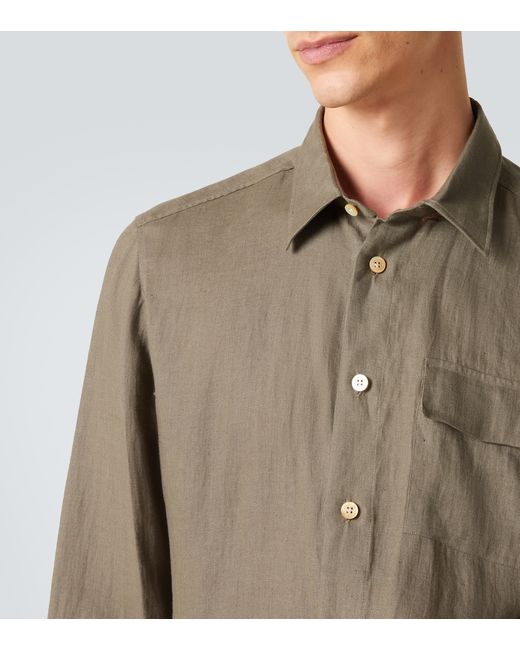Materiale: 100% lino. Trattamento: lavaggio a secco. Made in Italy. Colore del designer: Khaki. Collo: classico (a punta). Chiusura: abbottonatura frontale. Tasche: tasca sul petto con patta. Polsini: abbottonato. Lino.
