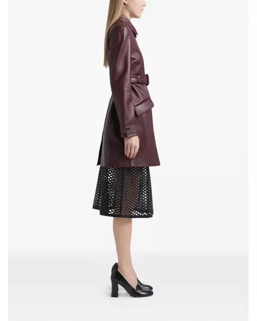 deep burgundy button fastening adjustable belt flap pockets buttoned cuffs