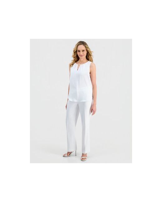 A sleeveless blouse from Kasper stuns with pearlized beads along the neckline, adding a subtle decorative element to a simple but elegant design.