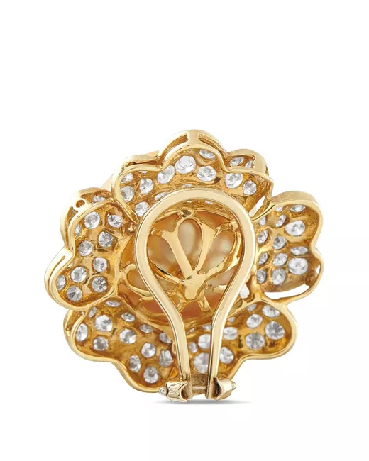 18K yellow gold pavé-set round-cut diamonds 3.25 carats pearl embellishment clip-on fastening Normal everyday use and external agents may reduce the lustre of gemstones and gold surfaces. To maintain, use specific, non-abrasive products specially meant for cleaning jewellery. Pearls should be the last thing that you put on in the morning and the first thing you take off at night. Avoid contact with perfumes or creams, and simply wipe with a soft cloth to clean. Condition: EXCELLENT. This previously owned item is in near-perfect condition with no signs of damage or use.