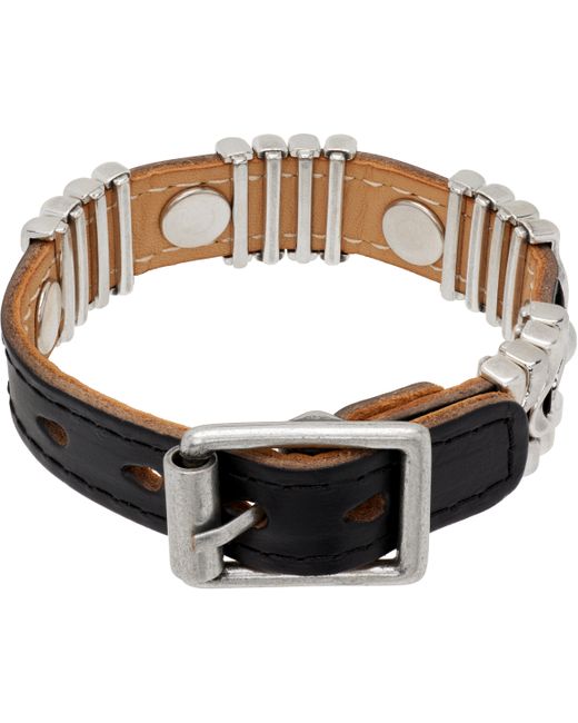 Buffed leather bracelet in black. · Stacked hardware and studs at length · Pin-buckle fastening · L8.5 Supplier color: Black chromexcel leather